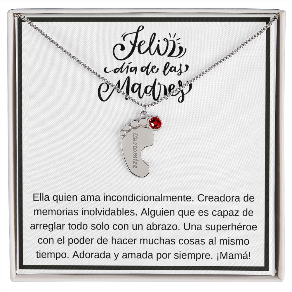 Celebrate the arrival of a newborn or treasure a precious keepsake with our Personalized Baby Feet Necklace with Birthstone . Personalize your gift by engraving a name of your choice on the pendant and choosing a crystal that correlates with the baby's birth month. And by choosing multiple pendants, this personalized gift is perfect for moms and grandmas with large families. This is a one-of-a-kind keepsake that will be cherished for a lifetime!